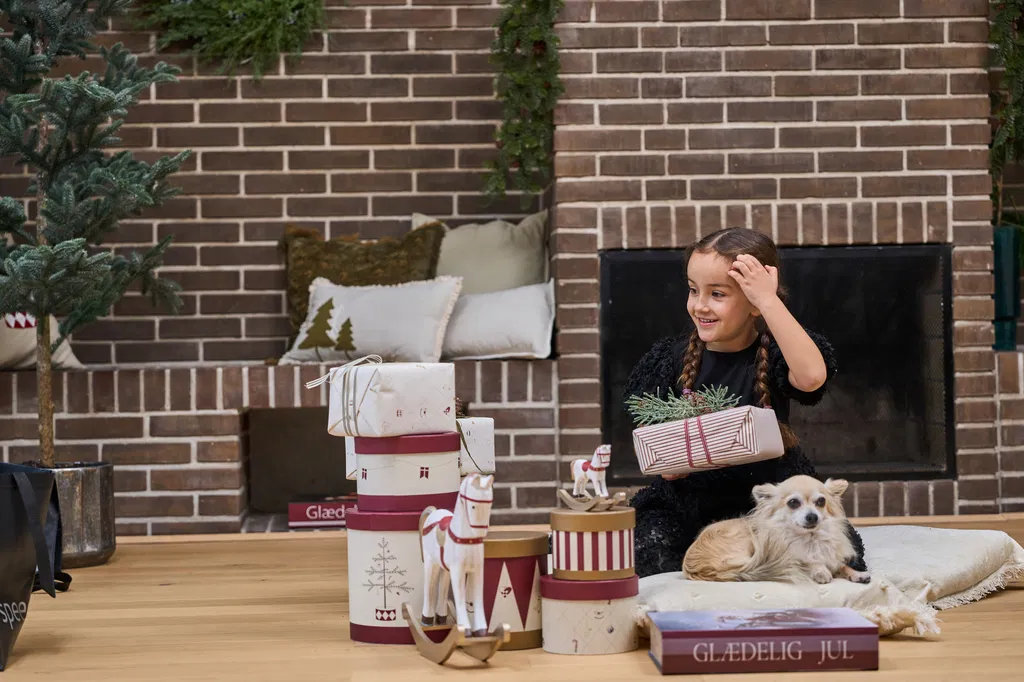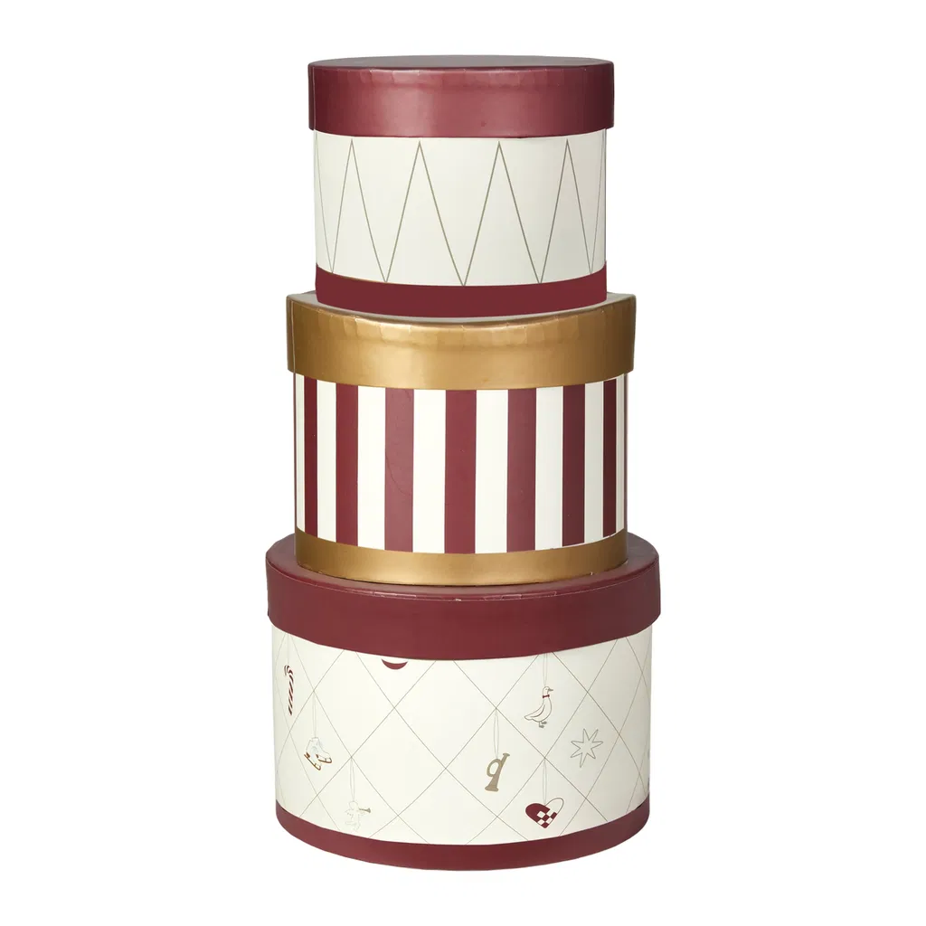 Æsker i pap, printet i striber, vores julemotiver og harlekin.