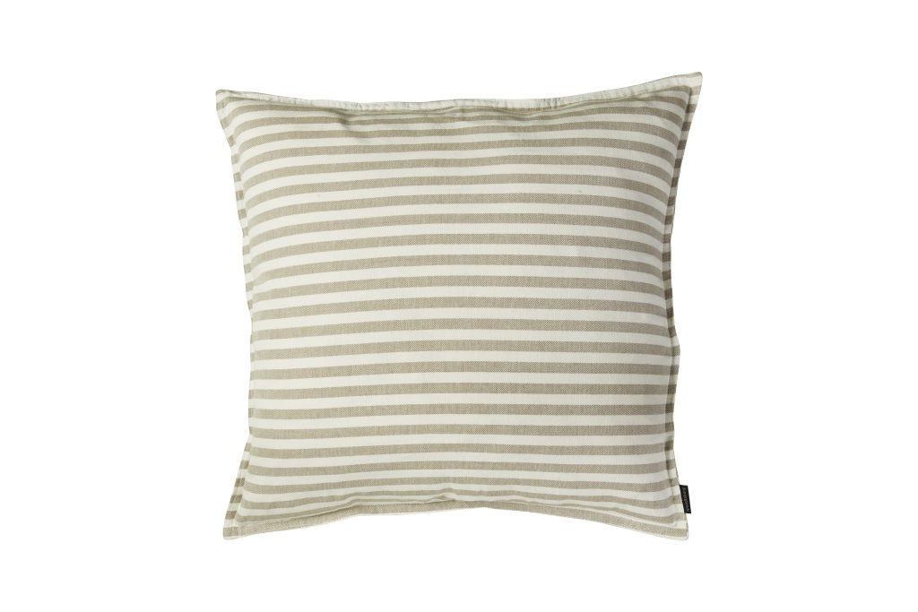 Puden er med beige og hvide striber, puden har en lynlås lukning for nem montering af fyld puden.